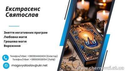 Ви відчуваєте, що життя зайшло в глухий кут? Стосунки руйнуються, плани не збуваються, а на душі тяжкість? Святослав - найсильніший екстрасенс і маг, готовий стати вашим провідником до гармонії, щастя й успіху.