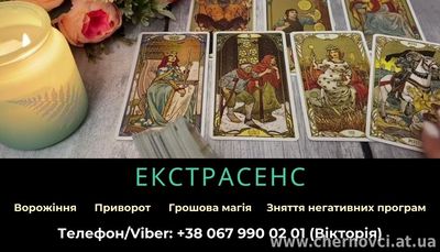 Не знаєте, як вирішити свої проблеми? Відчуваєте, що у вашому житті з'явився негатив? Я - Вікторія, екстрасенс, ясновидиця і таролог, з радістю допоможу вам знайти гармонію, захист і впевненість у майбутньому.