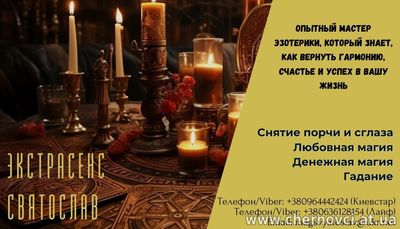 Шукаєте допомогу в складній ситуації? Екстрасенс Святослав готовий вам допомогти! З великим досвідом у магії та обрядових практиках, Святослав використовує стародавні знання і методи, щоб вирішувати найр