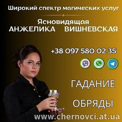 Потомственная предсказательница, ясновидящая в 10 поколении, из древнего рода Дошкещи Анжелика Вишневская поможет в решении трудных жизненных ситуациях!!!