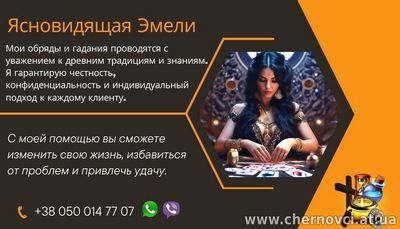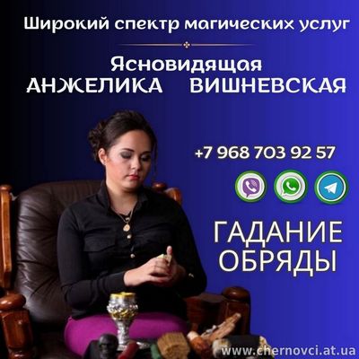 Спадкова провісниця, ясновидиця в 10 поколінні, з давнього роду Дошкещі Анжеліка Вишневська допоможе у вирішенні важких життєвих ситуаціях!!!