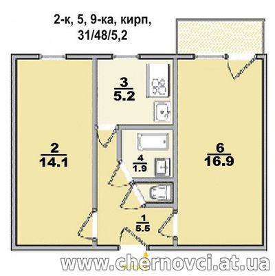 Загальна площа будинку - 65 кв.м., що складається з 2 спальних кімнат